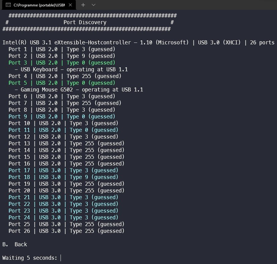 Port 6 został rozpoznany jako część USB 2 portu 17. W tym przypadku podłączyłem pamięć USB 3. Jeśli użyjesz pamięci USB 2, port 6 zapali się w menu „Wykryj porty”, a port 17 zostanie rozpoznany jako część USB 3.