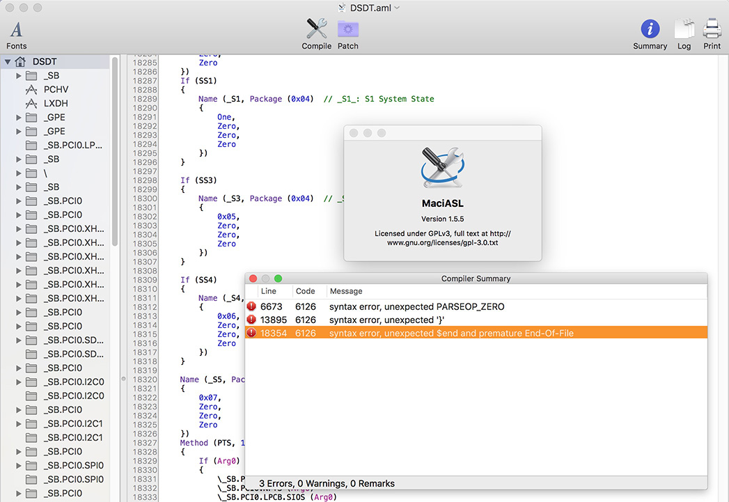 Otwórzmy teraz DSDT skorygowany wersją 1.4 w wersji 1.5.5 MaciASL: